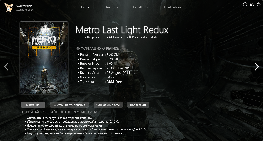 • Отключите антивирус - он может ложно срабатывать на лекарства, чем либо прервет установку репака, либо просто не даст запустить игру